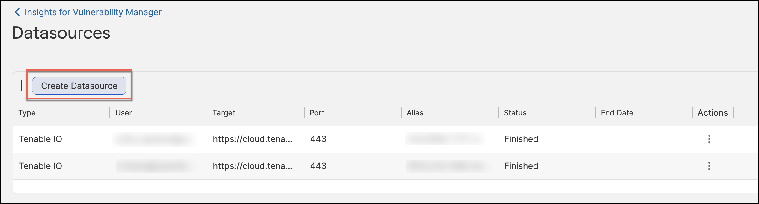 Choose Delete from Actions to remove the data source entry.Important: You cannot delete a datasource that is currently in a running state. Wait for the process to complete before deleting.