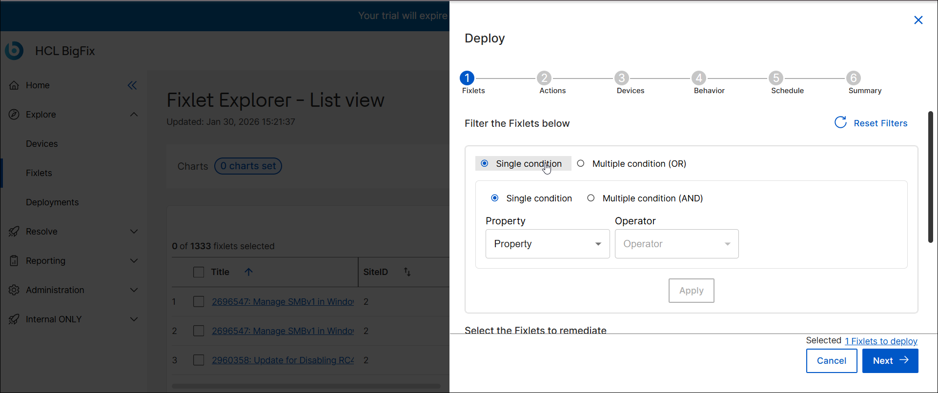 Learn how to deploy Fixlets using the Fixlet Explorer deployment wizard. Get to know about the optional customizations that you can configure for each step of the wizard.