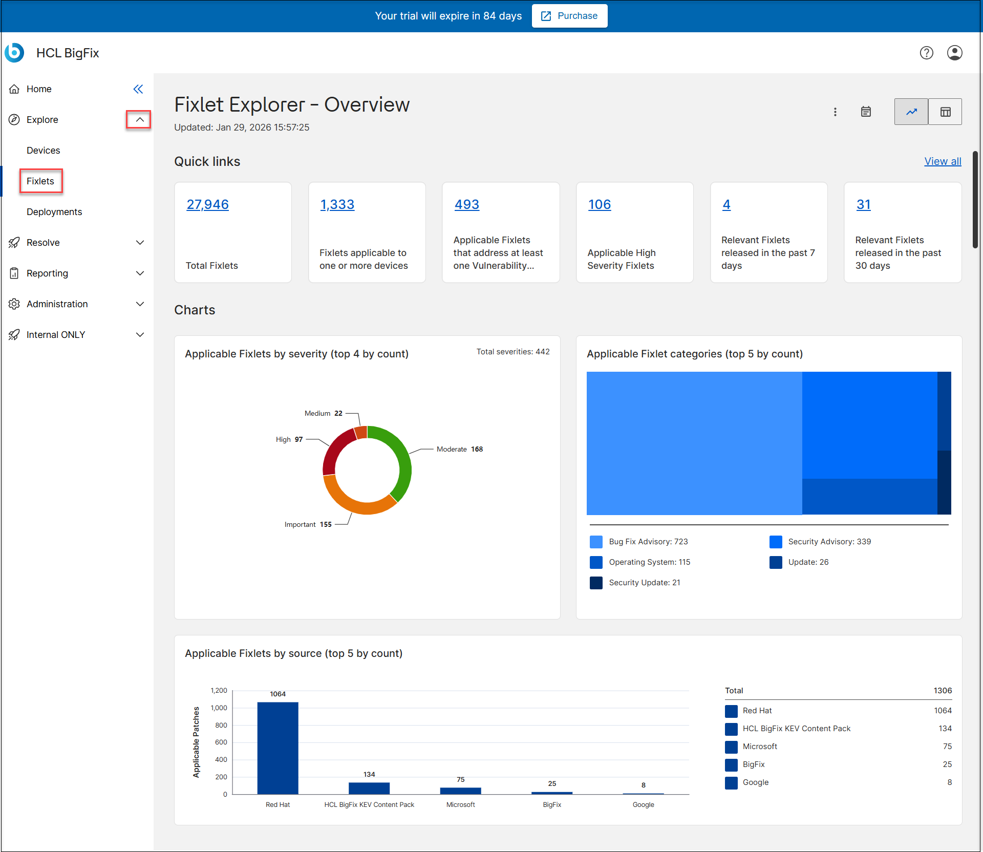 - The total number of Fixlets relevant to the devices enrolled in your account