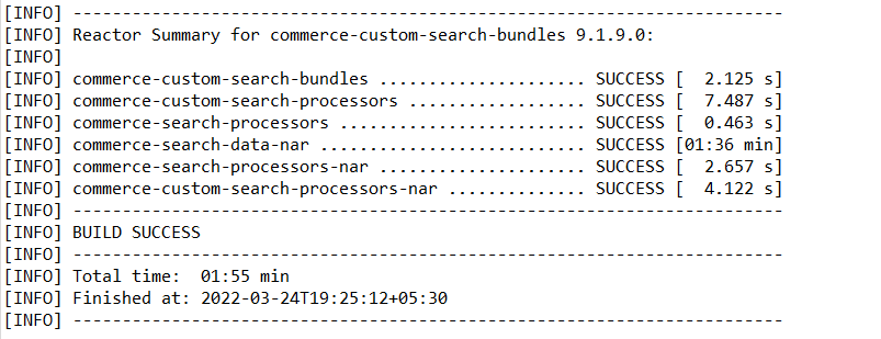 dummy-commerce-search-processors,dummy-hcl-cache-coreordummy-cf-baseJAR files, see ../../tutorials/tutorial/../../search/refs/rsddependency.html. - Once the build is successful, the NAR files can be viewed in the