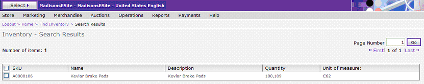 Después de encontrar la entrada de catálogo, el inventario no ATP compartido de la tienda con elementos está en el recuadro de diálogo de resultados de búsqueda de inventario. Consulte más abajo.