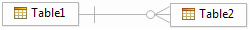 Las relaciones de integridad referencial entre las tablas de base de datos relacionadas se ilustran mediante la siguiente notación de pata de gallo: