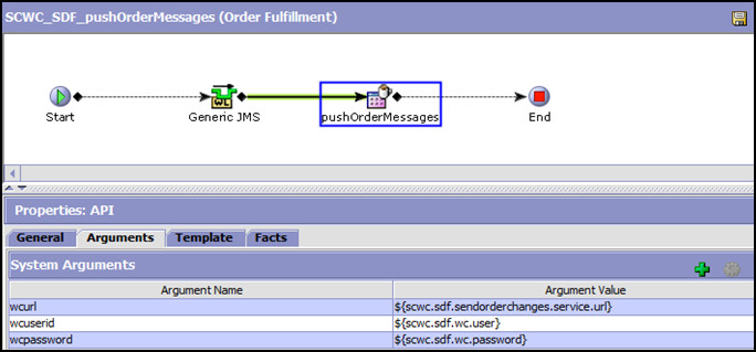 El SCWC_SDF_createOrderService que se muestra a continuación convierte el mensaje en el formato XML de entrada de la API createOrder de Sterling Order Management y activa la API.