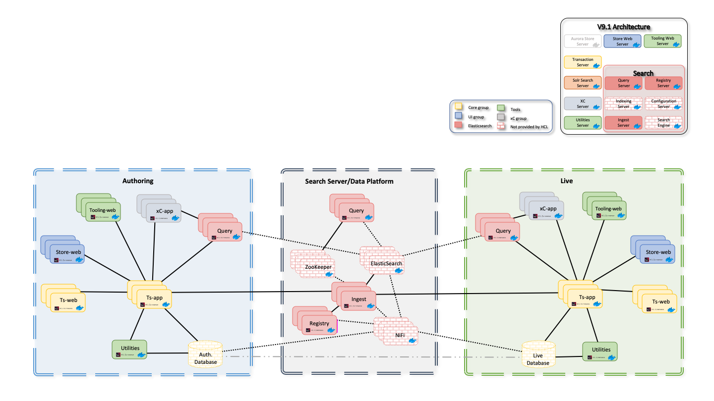 - El entorno de búsqueda existente de la versión 9.0 basada en Solr utiliza un maestro de búsqueda dedicado que se ejecuta en su propio contenedor o contenedores de Docker. Tiene repetidores y subordinados para equilibrar la carga. Puede desplegar esta configuración en la versión 9.1.