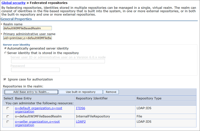 - Para obtener más información, consulte Configuring LDAP in a federated repository configuration.