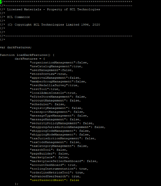 - En el despliegue, edite el archivo /profile/installedApps/localhost/ts.ear/LOBTools.war/javascript/shell/Configure.js que está disponible dentro del contenedor.