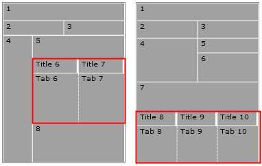 Algunas plantillas de diseño contienen ranuras que muestran el contenido de la página en pestañas. Puede añadir un título a cada una de las pestañas y luego añadir widgets para llenar las pestañas. No es necesario utilizar todas las pestañas que se incluyen en la plantilla. Por ejemplo, si la plantilla tiene tres pestañas, puede dejar la tercera pestaña vacía para que la pestaña no se represente en la página.