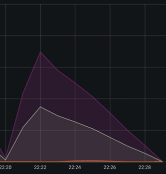 En este caso concreto, la ralentización será visible dentro de los gráficos de Grafana como tiempo de inactividad entre los picos de los elementos en cola. Esto sucede cuando el parámetro scroll.size está configurado para ser relativamente bajo en comparación con el tamaño total de la tabla de bases de datos a la que se accede. Lo idóneo es que scroll.size coincida con el tiempo de procesamiento, en cuyo caso, el tiempo de consulta de base de datos debe ser igual al tiempo de procesamiento de NiFi de los datos extraídos. Sin embargo, en casos especiales en los que el SQL se ejecuta durante más tiempo que el procesamiento de NiFi, esto podría observarse como picos cortos en el gráfico de elementos consultados, separados por una línea horizontal/inactiva.