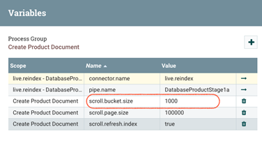 Otra opción que se puede cambiar para aumentar el ancho de banda del procesador es el tamaño del cubo (scroll.bucket.size). Al aumentar el tamaño del cubo, se incrementa la cantidad del fragmento de datos que procesará un solo procesador como grupo.