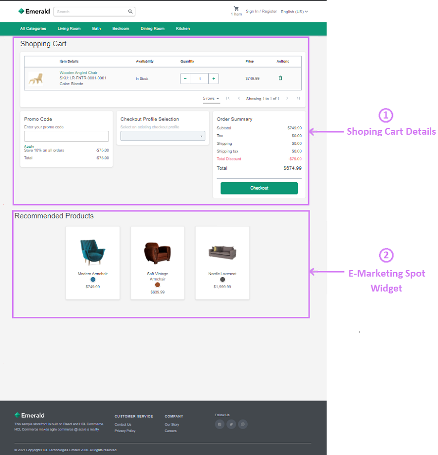 La ranura del carro de la compra del diseño de página en Management Center for HCL Commerce es no configurable.