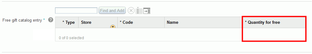 De forma predeterminada, la herramienta Promociones tiene una cuadrícula de bonificación de regalo. La cuadrícula no incluye la columna Cantidad gratis. Para dar soporte al nuevo tipo de promoción, añada esta columna Cantidad gratis, tal como se muestra en la imagen siguiente.