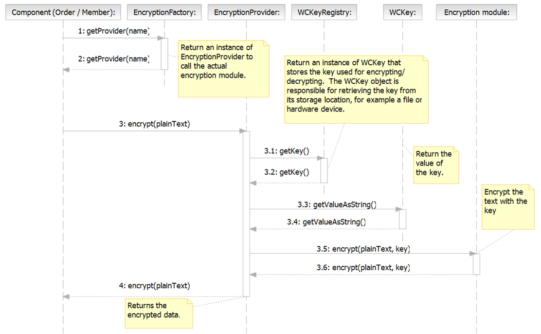 .encrypt("myDataToEncrypt"); Le diagramme d'interaction suivant explique la manière dont un composant chiffre les données confidentielles :