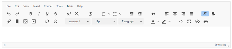 L'image suivante présente les options d'édition disponibles avec l'éditeur TinyMCE.