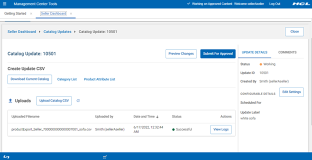 Après avoir connu le URL de base, le vendeur de la place de marché connaît l'URL complète et met à jour cette URL dans le fichier catalog CSV. Après avoir chargé le fichier catalog CSV mis à jour, le produit peut être prévisualisé et le vendeur de la place de marché peut charger l'image à partir de l'URL spécifiée.