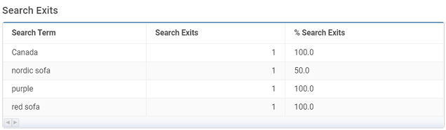 | Fermetures de recherche | Nombre de fermetures sur le site qui se sont produites suite à un résultat de recherche provenant de la fonction de recherche interne du site. |
