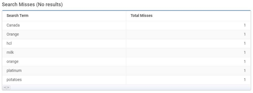 Le nombre de fois où l'utilisateur n'a pas obtenu de résultat pour le terme sélectionné s'affiche en tant que Recherches manquées.