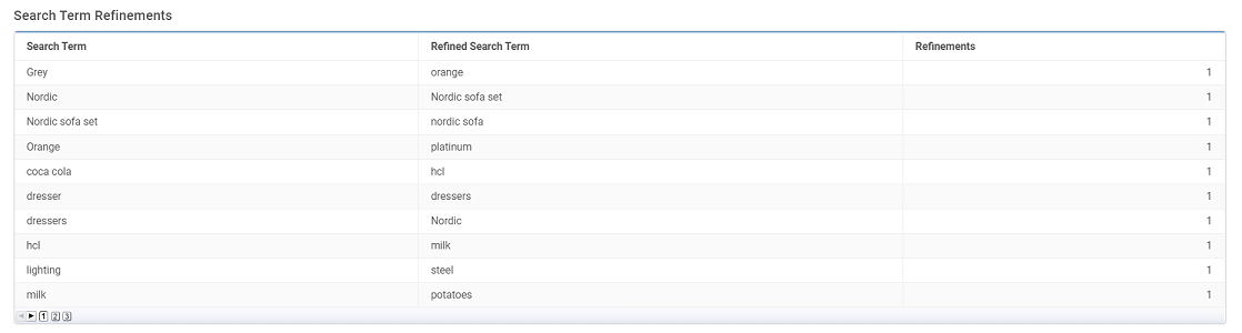 | Terme de recherche affiné | Terme ou chaîne de recherche de mot clé suivant entré par les utilisateurs après une recherche de chaîne initiale donnée. |