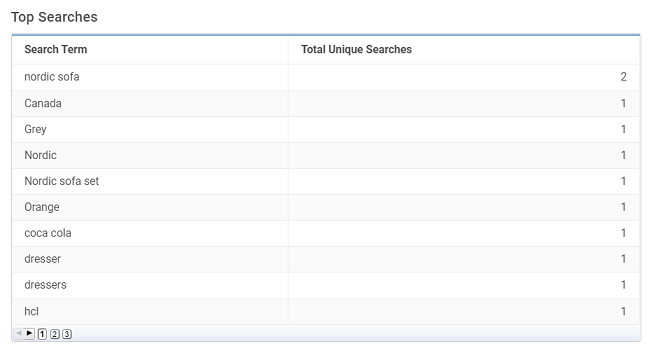 Pour afficher les recherches principales pour le magasin sélectionné, l'utilisateur peut vérifier les informations données dans le tableau Recherches principales, comme indiqué ci-dessous :