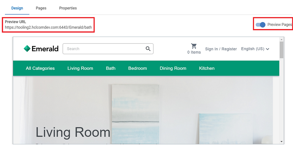 Dans la section Conception, activez le bouton Aperçu des pages pour prévisualiser l'écran du magasin. L'écran du magasin s'affiche.