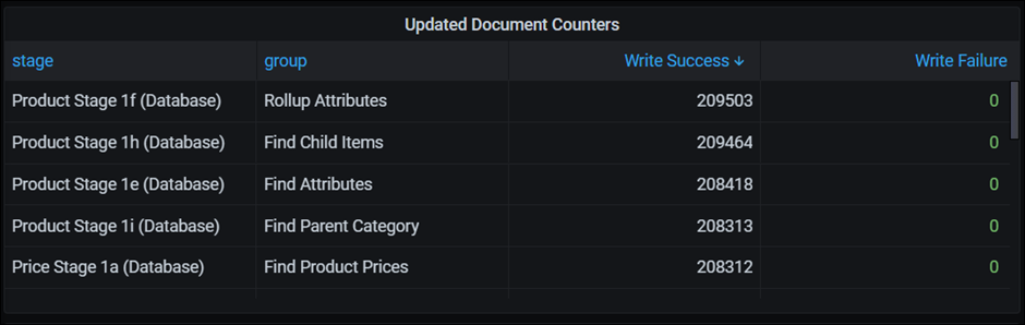 Le graphique de performances Graphana NiFi est le moyen le plus pratique de suivre le développement global de l'index. Vous pouvez examiner le rythme d'exécution total, déterminer la vitesse des principaux groupes de processeurs et voir la quantité de données générées et chargées dans Elasticsearch.