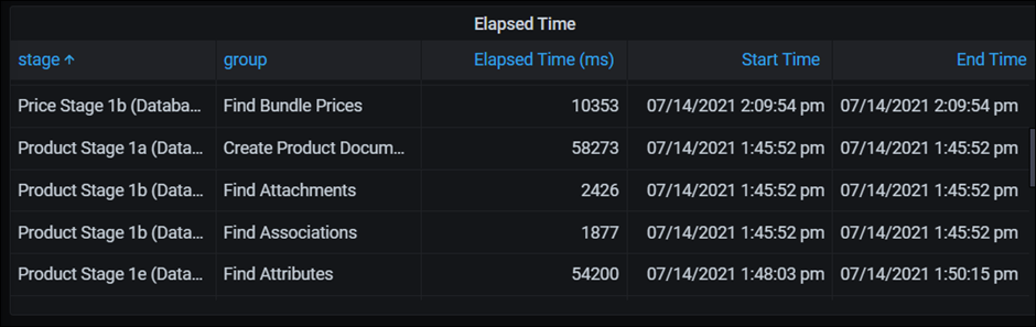 La durée des éléments mis en file d'attente 100 est courte dans cet exemple, il ne s'agit donc pas d'un problème. Si un groupe de processus prend plus de temps, avec un plus grand nombre d'éléments en file d'attente, il s'agit d'un possible goulot d'étranglement dans le pipeline.