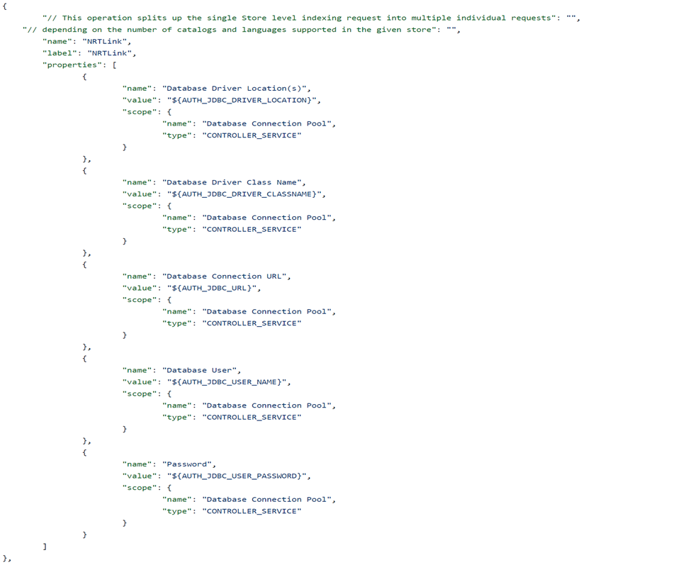 - La définition de description du connecteur Ingest n'inclut plus les propriétés de connexion à la base de données. Les propriétés liées aux connexions à la base de données sont présentées ci-dessous. Ces propriétés peuvent toujours être utilisées de la même manière qu'auparavant. Toutefois, le contexte de paramètre est recommandé.
