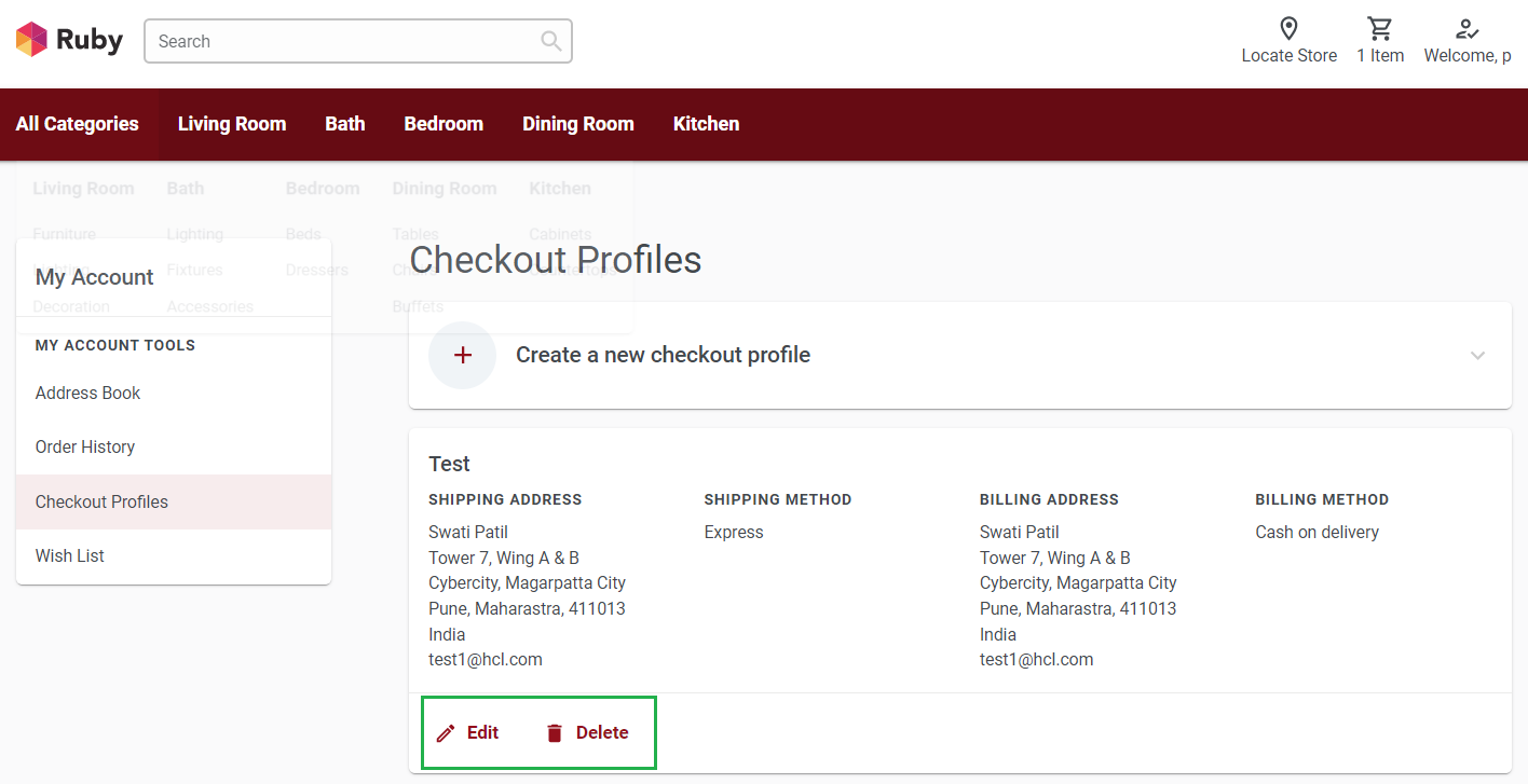 Les boutons Editer et Supprimer apparaîtront sous le profil de départ, comme illustré dans l'image suivante.