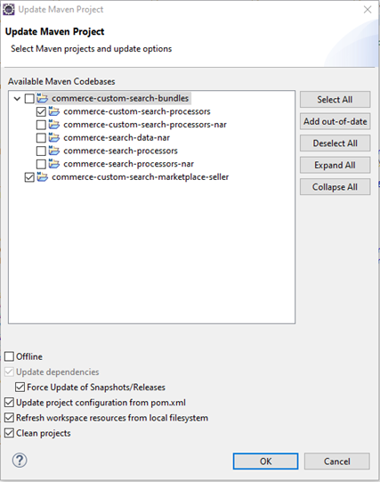 Note:- Le projet de personnalisation commerce-custom-search-marketplace-seller n'a pas de dépendances sur le projet commerce-custom-search-bundles-9.1.x.x , mais il est recommandé de générer le projet commerce-custom-search-bundles-9.1.x.x avant de procéder à des personnalisations. Cela peut être utile pour d'autres personnalisations qui peuvent avoir des dépendances sur commerce-custom-search-bundles-9.1.x.x pour d'autres cas d'utilisation.