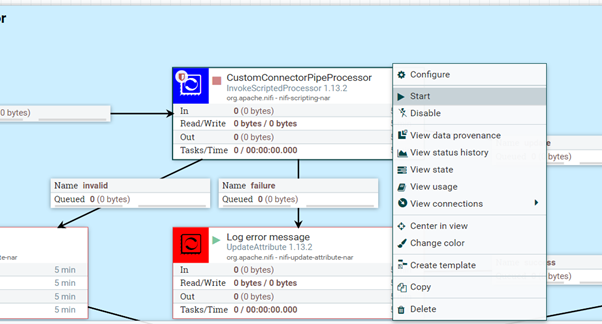 Cliquez à nouveau avec le bouton droit de la souris sur CustomerConnectorPipeProcessor, puis cliquez sur Démarrer pour démarrer à nouveau le processeur.