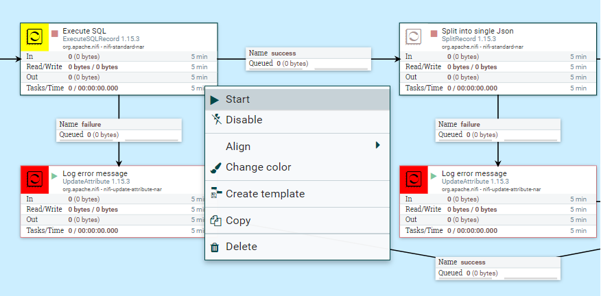 - Une fois toutes les connexions terminées, démarrez les groupes de processus. Pour démarrer les groupes de processus, sélectionnez tous les groupes de processus requis en appuyant sur la touche Maj et en cliquant sur tous les groupes de processus. Cliquez avec le bouton droit de la souris sur l'un d'entre eux, puis cliquez sur Démarrer.