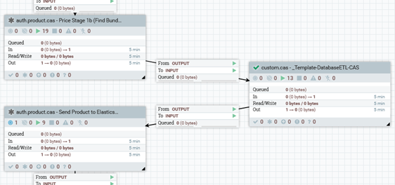 Insérez ce nouveau groupe de processus entre Price Stage 1b (Rechercher des prix groupées) et Envoyer le produit à Elasticsearch, comme dans l'exemple suivant :