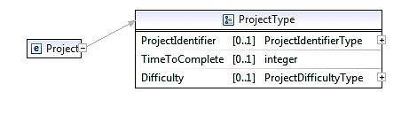 schemaLocation="../../../../IBM/Commerce/Resources/Components/IdentifierTypes.xsd" />Le module de service que vous créez dans ce tutoriel contient un nom : Project. Pour les besoins de ce tutoriel, les noms Project ont été prédéfinis. Le fichier Project.xsd, qui définit les noms, est fourni dans l'exemple de fichier ProjectServices.zip.