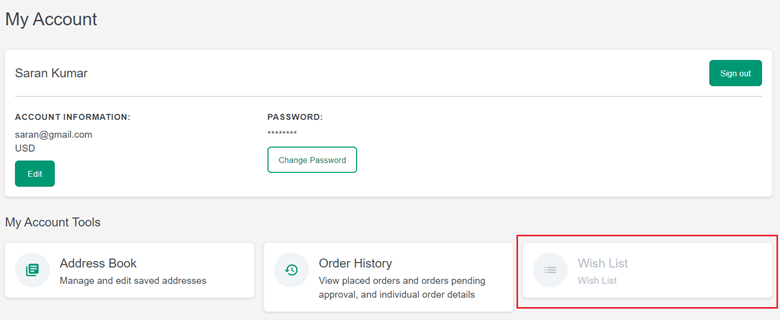 WISH_LIST. - Actualisez le navigateur et la fonctionnalité Liste de souhaits sera activée pour l'utilisateur.