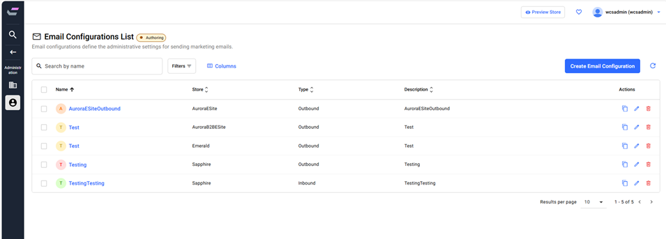 - In the Management Center, navigate to . The Email Configurations List page opens.