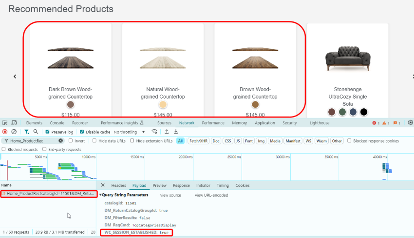 WC_SESSION_ESTABLISHED cookie is present and its value is