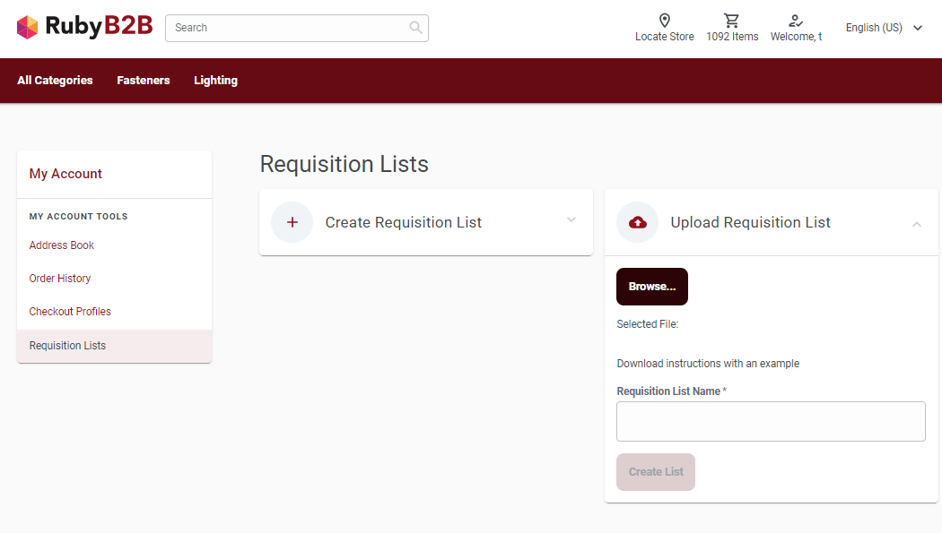 The Requisition Lists page also provides users with the option to upload a requisition list from their local folder.