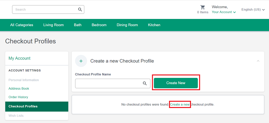 A shopper can add a new quick checkout profile to enable auto-population of the billing and shipping addresses during the cart checkout phase.