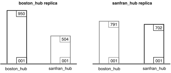 Operations 1–702 have occurred at replica sanfran_hub.Figure 2. State of a family