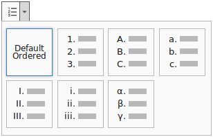Shows the font color options. For TinyMCE this is displayed as two items, one for the text color and one for highlight color. For Textbox.io this is a single widget that allows setting both. Note that the color list is configurable. |