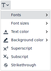 font-face, font-size, font-color, superscript, subscript, strikethrough |