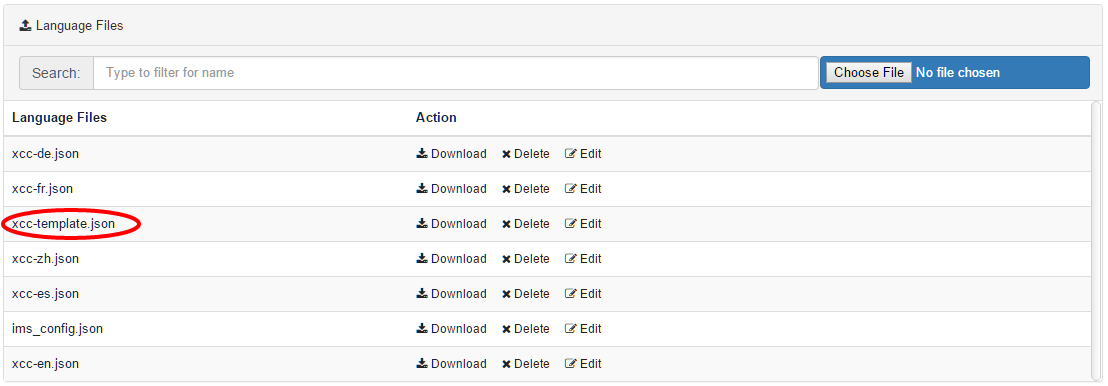 The name of the language file needs to consist of the prefix "xcc-" and the abbreviation of the language it is intended for. You can find the language files in the ?Connections Engagement Center-Settings? tab of the admin panel. Here you can download and upload the language files. The file contents need to be of type JSON. This JSON format basically consists of key value pairs that define the String to be used in the language the file defines. If you omit a key-value-pair, the string denominated by that key will appear in its English default. If a language file for a chosen language is not available, the Messages used within Connections Engagement Center will remain in its English defaults. Messages presented exclusively to Page Editors or Admins will always be English.