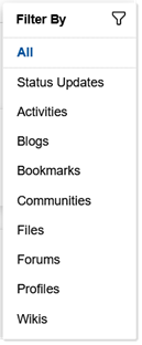 Note: You might see a different list depending on what apps your organization deploys from Connections and other products.