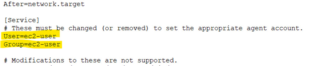 Note:Note: When you customize the user and group values, you must update the ownership of the agent relay files to match with the updated User and Group values.