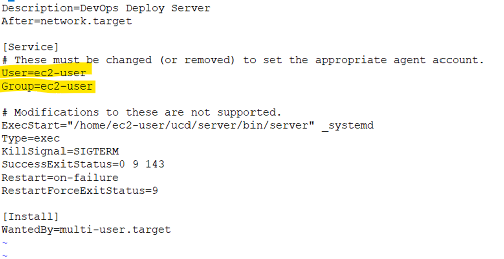 Note:Note: When you customize the user and group values, you must update the ownership of the server files to match with the updated User and Group values.