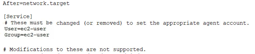 Note:Note: When you customize the user and group values, you must update the ownership of the agent files to match with the updated User and Group values.