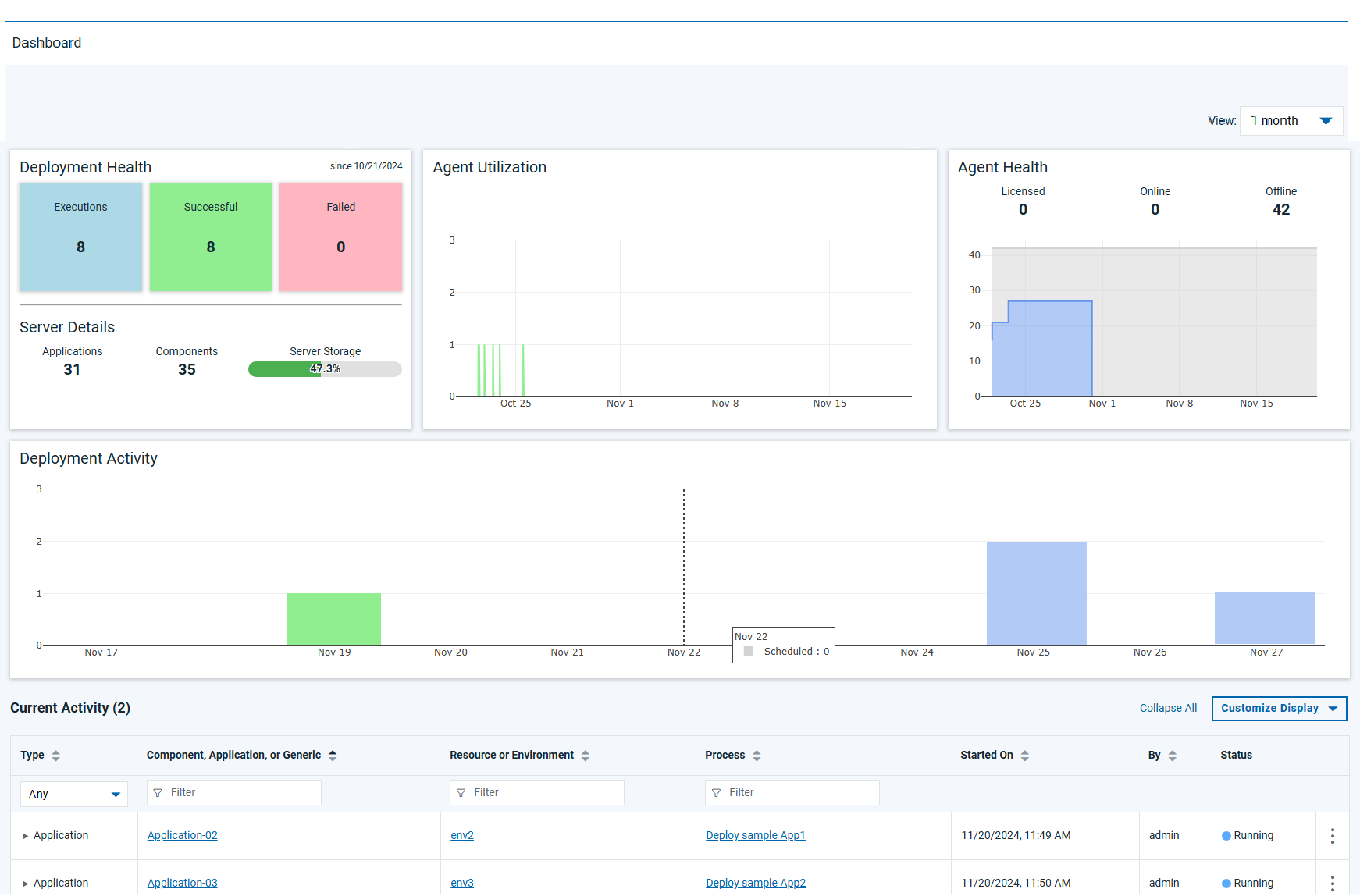 The Current Activity widget gives you an insight into your active deployments. It