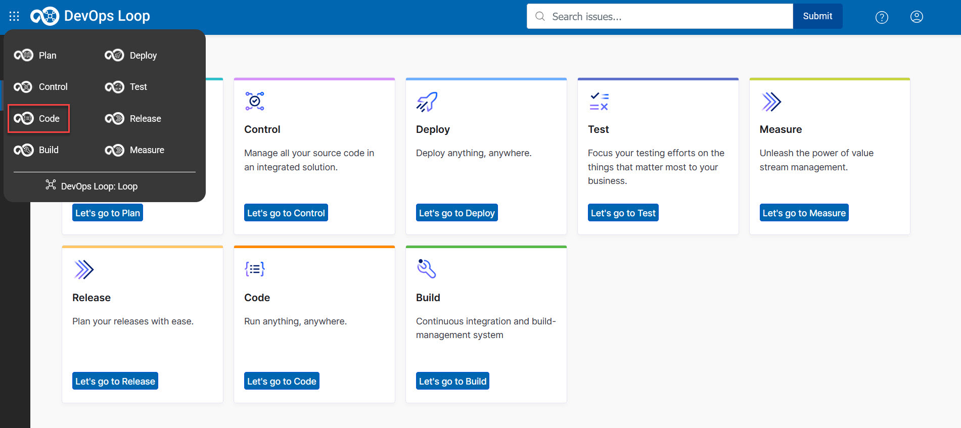 You can use one of the following procedures for accessing Code in DevOps Loop.