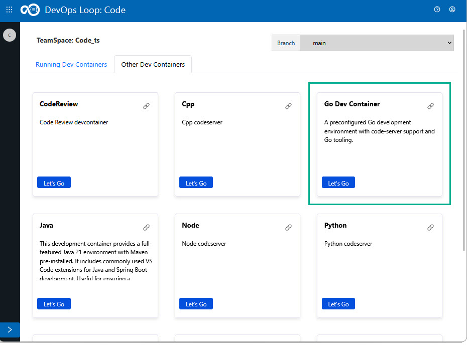 As a teamspace admin in Code, you can configure the dev containers so that they are available to the team members.