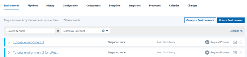 In the previous tutorial, you proved that the components in the first environment are compatible and complete. You can use the snapshot that you created to quickly promote all the components to the new environment. Your delivery pipeline might include deploying an application to testing and quality assurance servers before you deploy it to a production server. By using a snapshot, you can ensure that you quickly and correctly select all the right component versions as you move an application through the delivery pipeline.