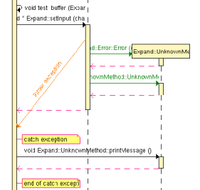 Click the catch exception or end of catch exception notes to open the Text Editor at the line where the exception is caught.
